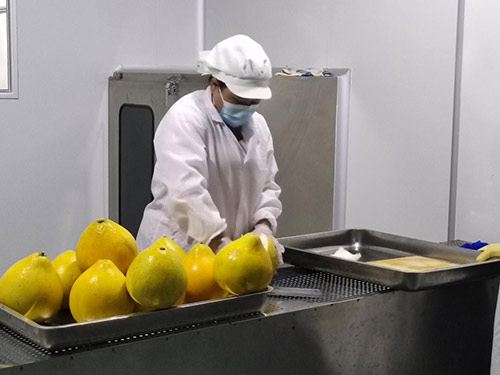 而在茶叶加工室里,工人们身着洁净的实验服,严格遵循操作规范作业,手法娴熟地切割柚子皮,为制作柚金毫茶叶做准备,每一个步骤都彰显着原森态农业对品质的严苛把控。
